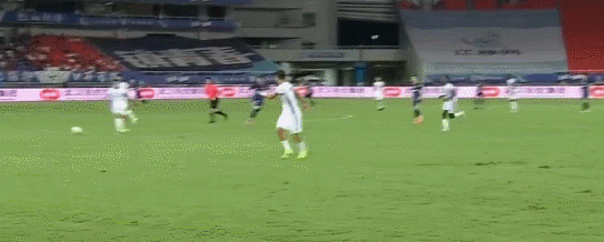 第26分钟,高天意犯规,被出示黄牌。第35分钟,陈晋一在禁区左侧扣球过人后起脚低射,门将把球扑了一下,皮球稍稍偏出右侧立柱。第37分钟,阿苏埃爆射踢偏了。第40分钟,特谢拉踩踏犯规,被出示黄牌。半场结束,比分依然是0-0!